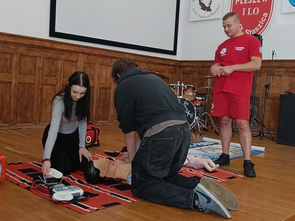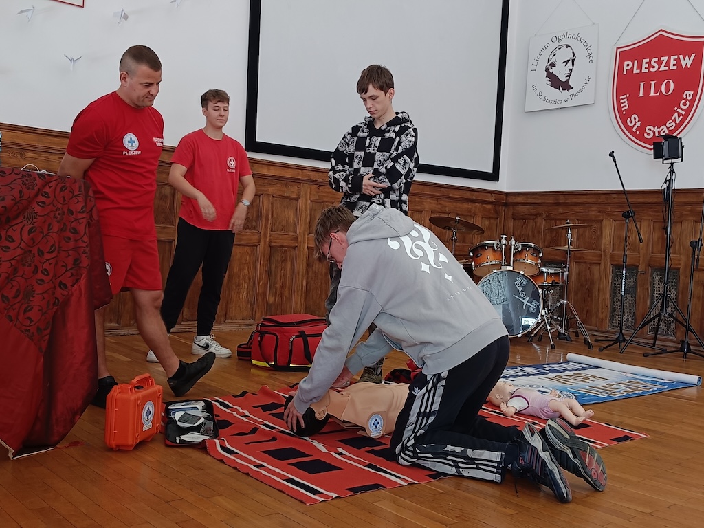 Co roku każda klasa w szkole przechodzi kurs pierwszej pomocy. W tym czasie uczniowie nabywają podstawowych umiejętności mogących uratować życie w nagłych sytuacjach. Klasa 4bj miała w tym roku okazję przejść takie szkolenie dzięku uprzejmości przedstawicieli WOPR Pleszew. Dziękujemy za szkolenie.